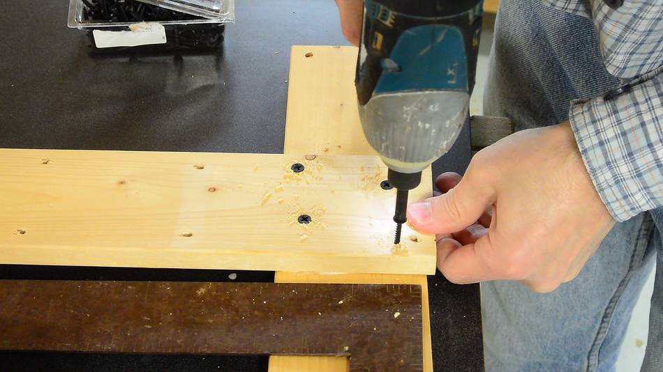 If you are using particle board, be sure to pre-drill all the screw holes. Particle board is hard and brittle, and driving a screw into it without a pilot hole can cause it to break out.