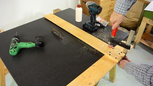 a big T-square by gluing and screwing two pieces of wood together