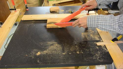 Making cross cuts. I have to apply constant force to the right to keep the T-square