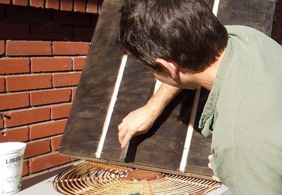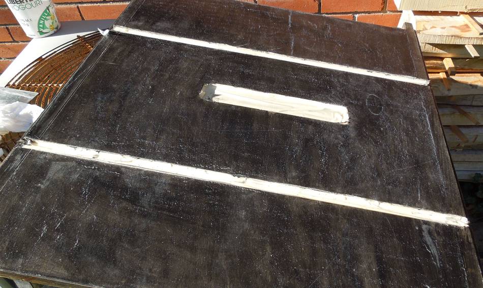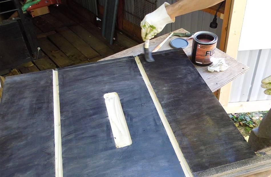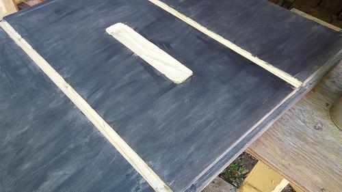 I covered the table's slots with masking tape, and rubbed some black acrylic