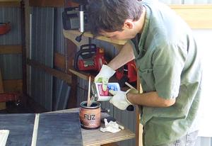 and they recommend thinning it with acetone, which I'm doing here. Then applying