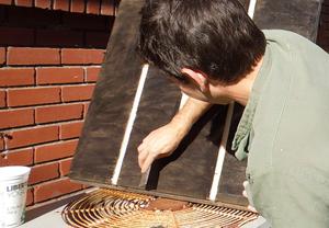 Here I'm applying the primer, which is important for getting good adhesion.