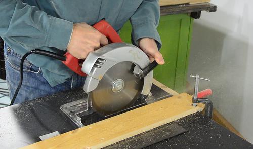 the saw top on a flat surface and use weights to clamp it, or screw the piece