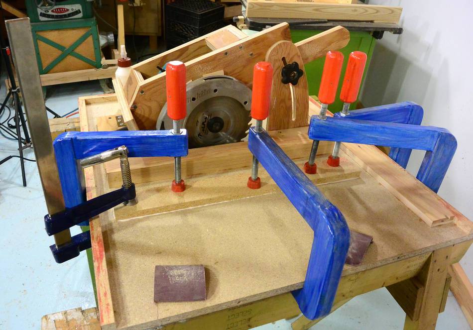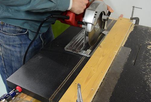edge of the saw. I also clamped a piece of wood to the far edge of the