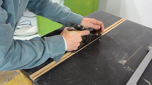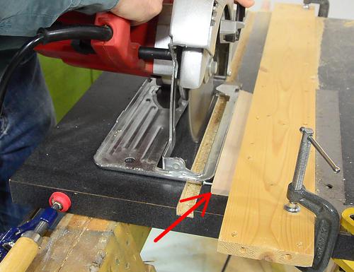 Then cutting away half of each strip of hardwood. I made another guide,