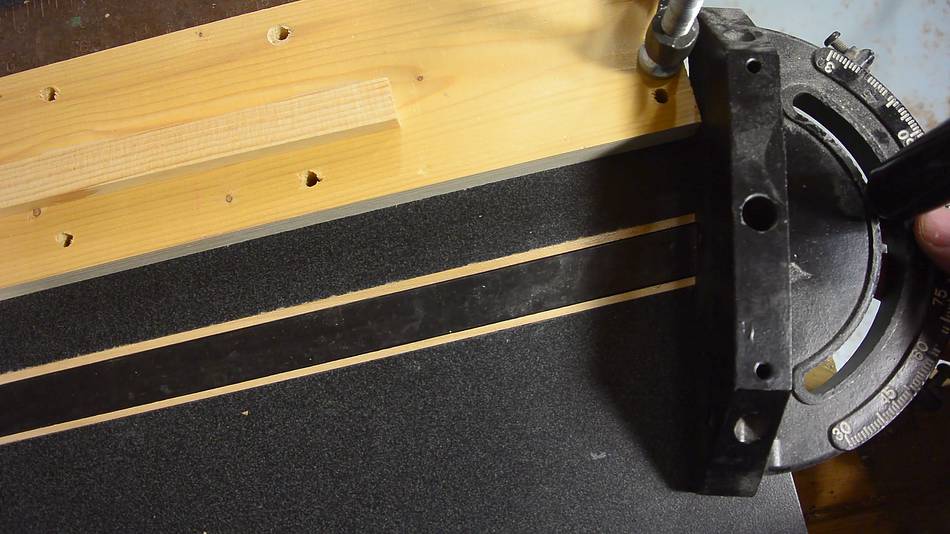 to put between the fence and the saw, and using that, made the left-most cut.