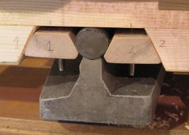 purposes. I came up with this wedging idea to clamp to the steel rods. The trapezoid shaped