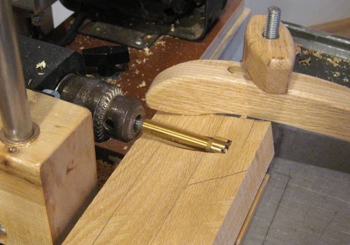 out of wood, of course. The one at left uses a 3/8" x 4" carriage bolt. The head of the