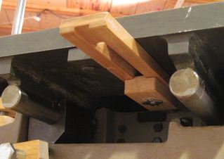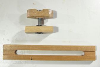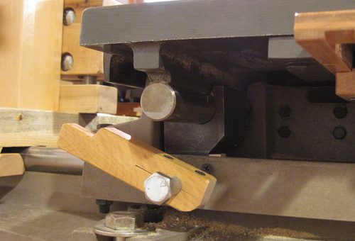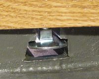 bolt has a T-profile piece of maple attached to it, to hold it securely in the T-slots