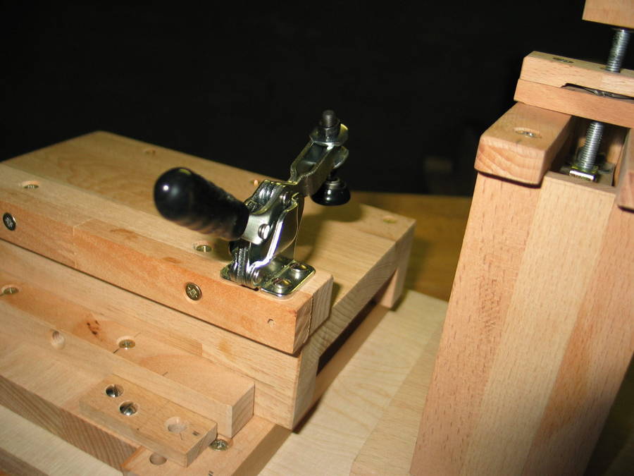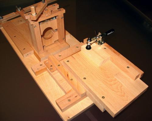 Another dovetail slide allows the platform with the clamp to move side to side. The cross slide can also be locked in various positions by inserting a 6 mm dowel.