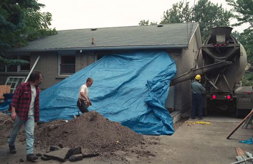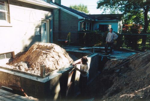 That finished up the concrete work. The contractor had still promised to take away the small pile of leftover dirt in the foreground. It took repeated nagging to get him to do that, and in the end, he just came with his pickup truck and we shovelled it onto the back of it. Overall, I was pretty happy with the work my contractor did. The whole thing came to somewhere around $3000, though that was in 1997 dollars. |