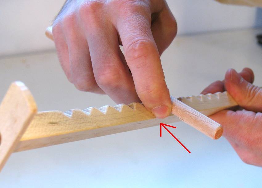 plus a dowel to rub across those notches. The trick is in how you rub the dowel