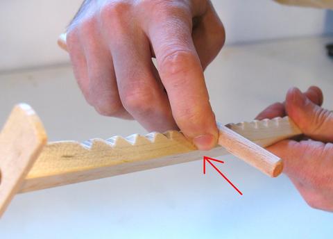 The dowel needs to be firmly held. As you rub the dowel back and forth, press your thumbnail