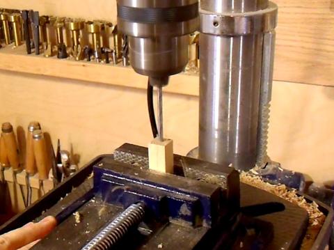 Next, drilling a hole in the end of the stick. The hole is sized just a tiny bit larger