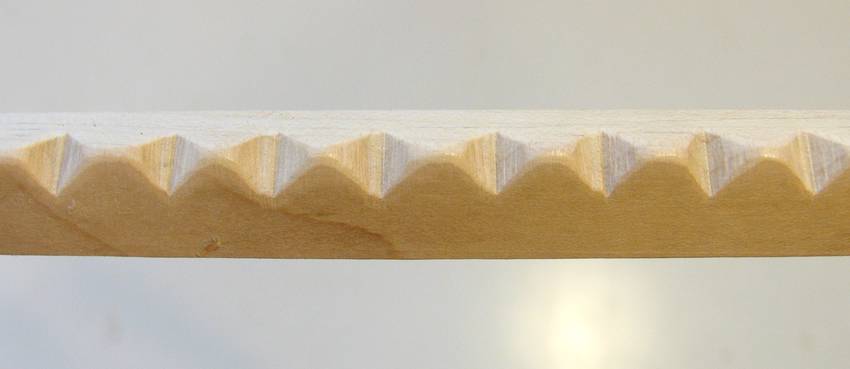 The notches are about 6 mm deep, spaced about 13 mm apart.