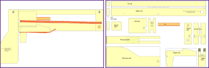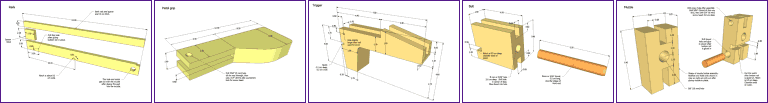 The plans also include detailed drawings of all the parts with measurements if you prefer to measure. The plans were drawin with the free Google Scketchup, and the 3D sketchup model of the jenga pistol is included with the plans.