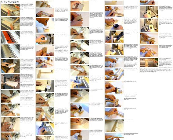 The plans also come with very detailed illustrated instructions showing every step of building the jenga pistol.