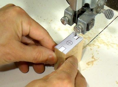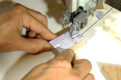 Following the lines on the printout to cut out the slots worked accurately enough, although I did have to trim them a little bit (also with the bandsaw) to get the right tightness of fit.