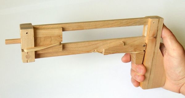 Jenga pistol, version 3![]() My previous Jenga pistol and video were a viral hit, with over one and a half million views on YouTube. I experimented with selling Jenga pistols, but there were a few things, such as the pulley and the trigger mechanism, in that design that were fiendishly tricky and time consuming to construct, so I didn't make any past the first batch. I still get asked from time to time about buying a Jenga pistol, about dimensions for the Jenga pistol, and about plans for the Jenga pistol. So I thought I'd revisit that topic. Part of my goal was to try to simplify the design to make the Jenga pistol much easier to build.