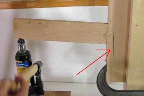A failed mortise and tenon joint. A remnant of the gap is still visible,