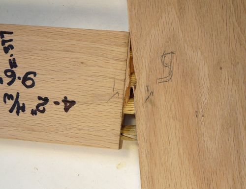I would have much preferred the mortised piece to be fairly thick, but the makers of the dowel jig insisted that it be 3/4" (18mm). I figured this would not leave that much wood on either side of the mortise, so I suggested using a 1/4" wide mortise against the 3/8" wide dowels, which the makers of the dowel jig agreed to. I'm pretty sure that the amount of remaining material, and likely my choice of 1/4" tenons over 3/8" tenons turned out to probably be a key factor in how the tests turned out. The makers of the dowel jig always test against a 3/8" tenon in 3/4" stock.