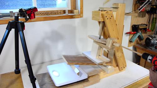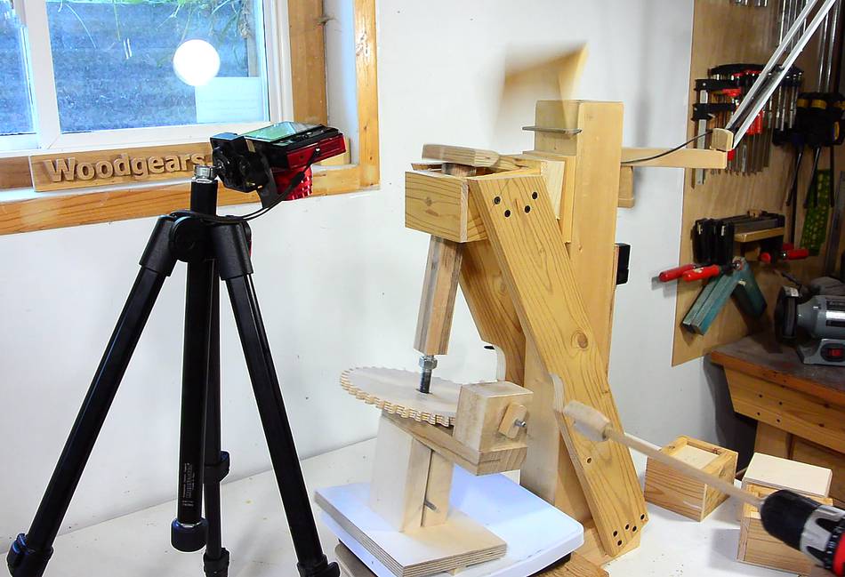 with a camera watching the scale. A "plunger" sits on top of the screw jack. The box