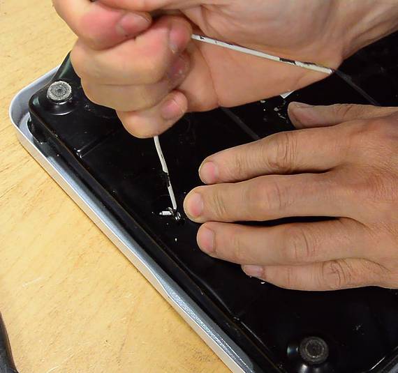 any glue in the rabbet.