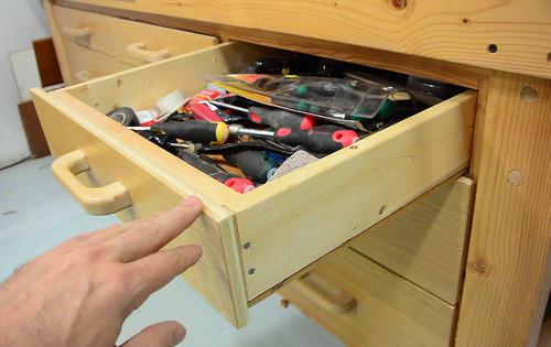 workbench drawers, I still glued the plywood flat