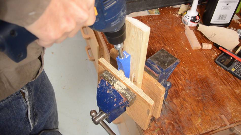 You can buy fancier jigs which integrate the pocket hole jig and clamping, but clamping the really basic jig and workpiece in a vise worked out really well. If I used pocket holes much, I think I'd make something to attach the jig to the front jaw of the vise.