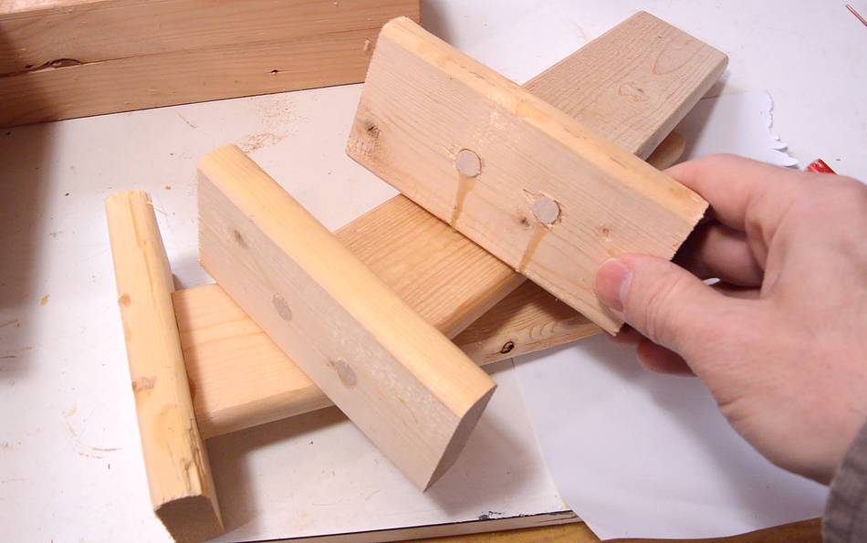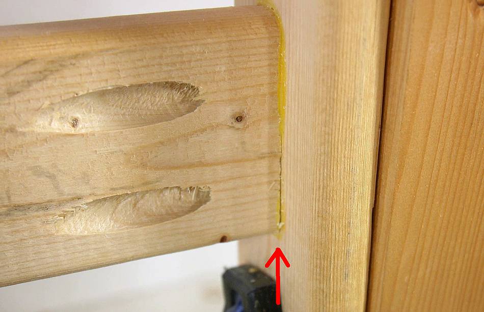 Mortise and tenon with yellow glue: 235, 235 and 195