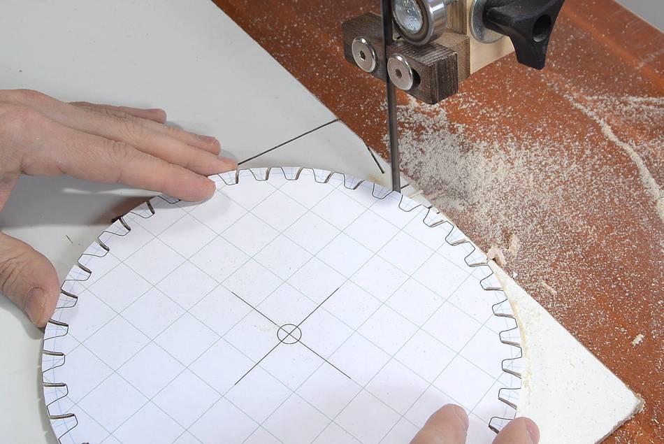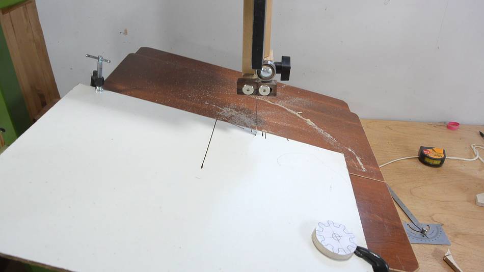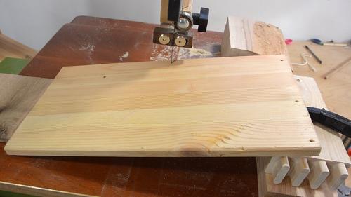sort of "zero clearance insert" for the bandsaw. This cuts down on