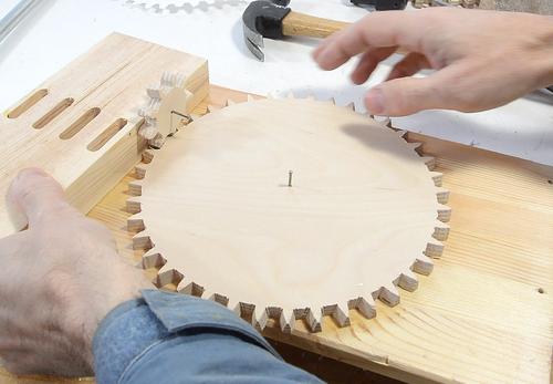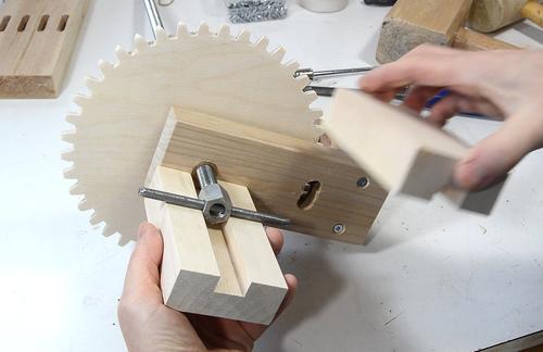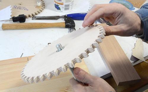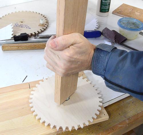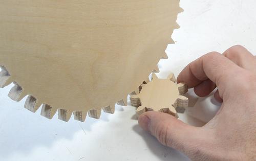 At least, with these gears loose like this, there's less risk of them jamming. I may have to re-make the small gear if the teeth break once I use it, but I think the big one will be ok regardless.