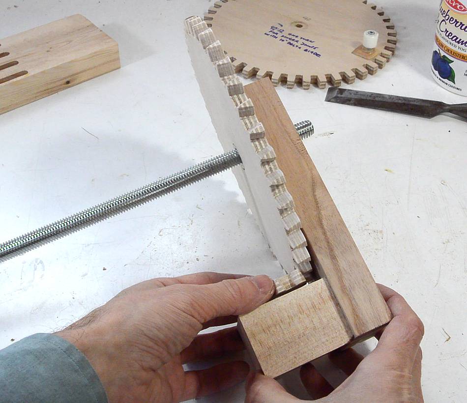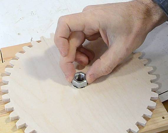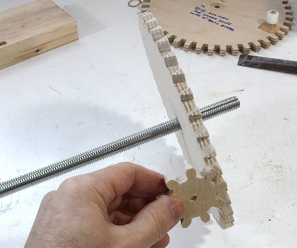 I made a big gear to turn the nut with, with a smaller gear to turn the big