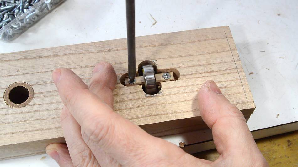 ball bearing in the piece of wood. The ball bearing fits tightly on a square piece