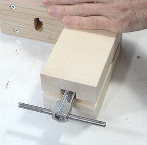 of wood, which is screwed into a cross-shaped cavity that I hogged out on the