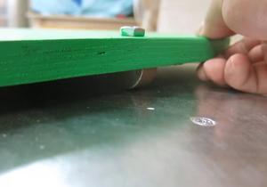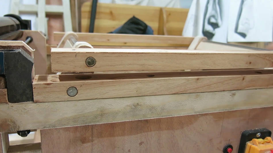 the jointer's frame. There is a block of wood be placed between two feet, so