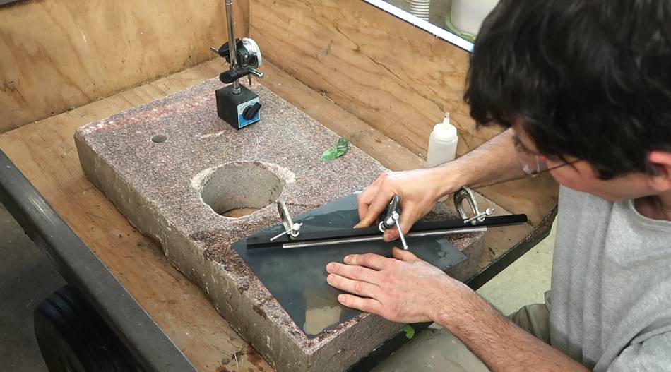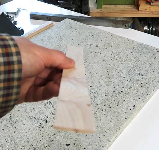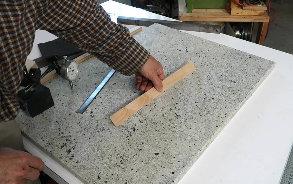 For example, this pretend wooden jointer knife touches the granite along it's entire length when I press it down, but looking along it, it's actually quite crooked.
