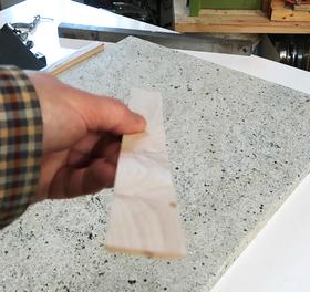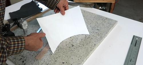 the granite at an angle, that results in a curved edge. I'm illustrating this