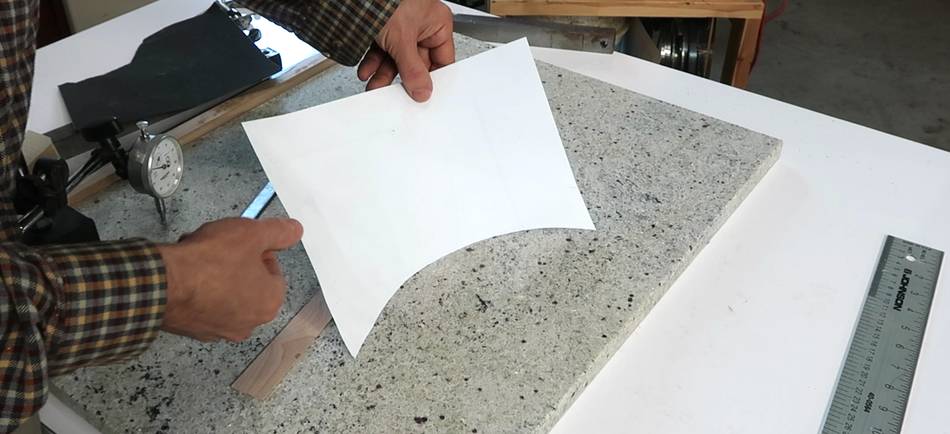Even the piece of aluminium extrusion that I used to check the straightness of the knives in this article also measured curved. Some cold rolled steel I checked turned out not to touch the granite in the middle, and if I flipped it over, it still didn't touch in the middle.