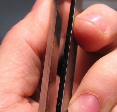 light reflected off the edge on the blade at right, but none on the very pointy edge at left.