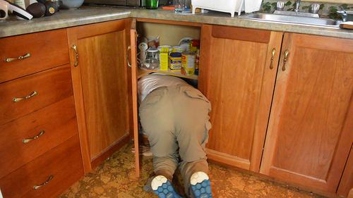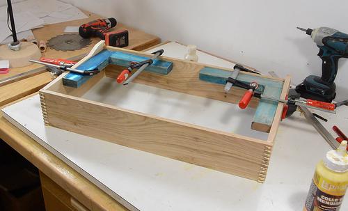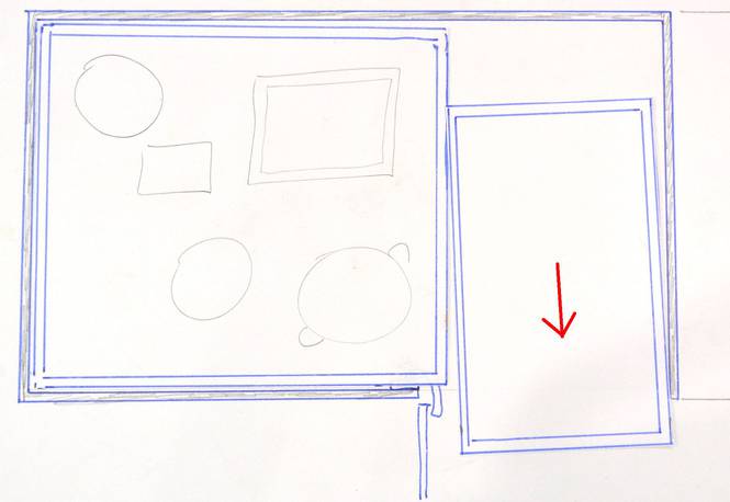 But the problem with that scheme is that the larger box would have to be larger would fit through the cabinet door, even at an angle. I thought about assembling the box in place, but that would no doubt involve a lot of cursing!