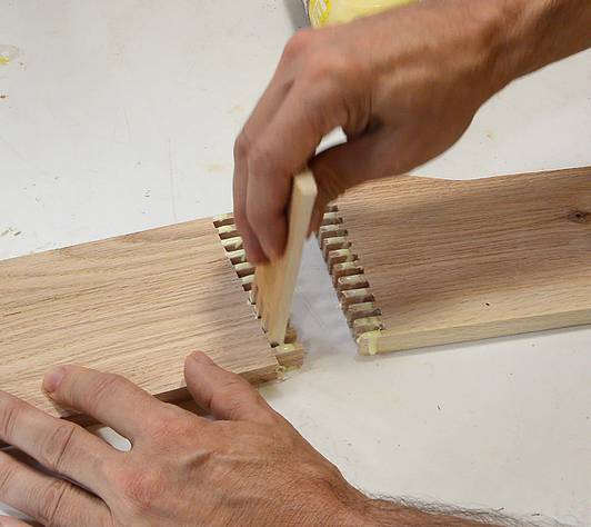 I made a comb with four fingers on it to speed up spreading the glue on the