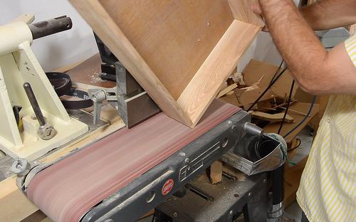 Cleaning up the routed edges on the belt sander. The router didn't cut terribly