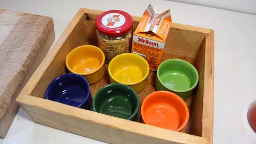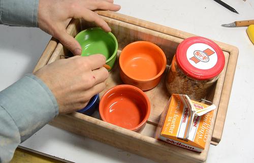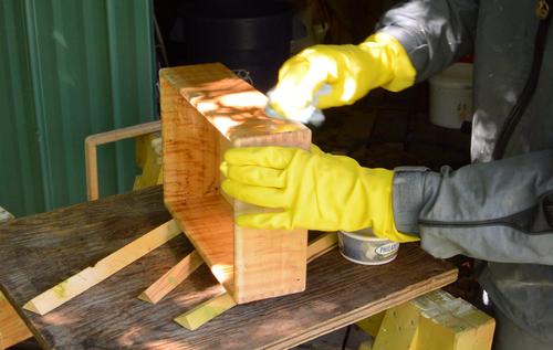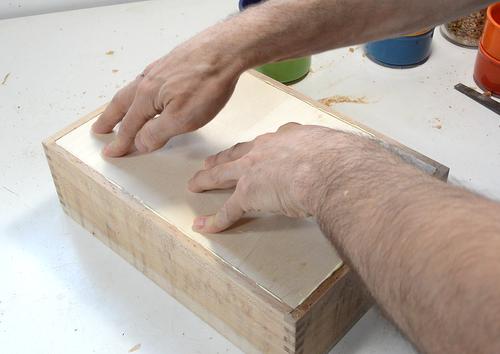 Then gluing on the bottom, with lots of glue. I weighed it down