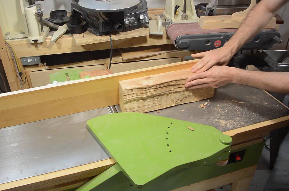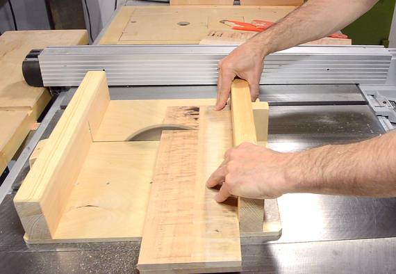 Now loading the four pieces in the jig at once, plus a piece of scrap