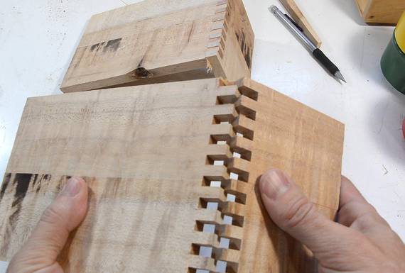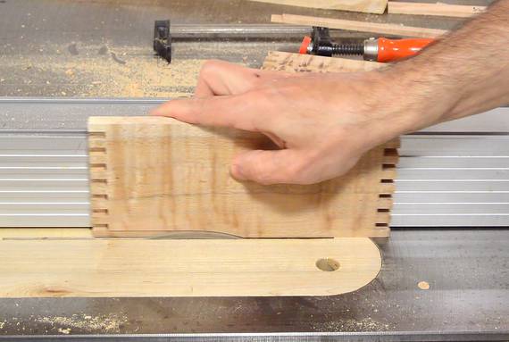 Cutting the joints. Each 1/4" wide slot is made by making three cuts,