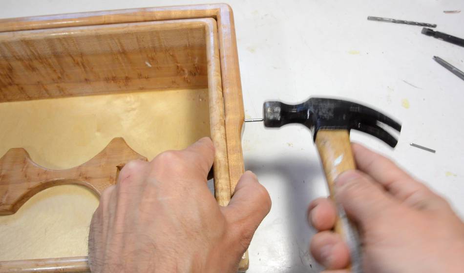 I used some thicker cut-off nails for the hinge pin. I drilled a hole