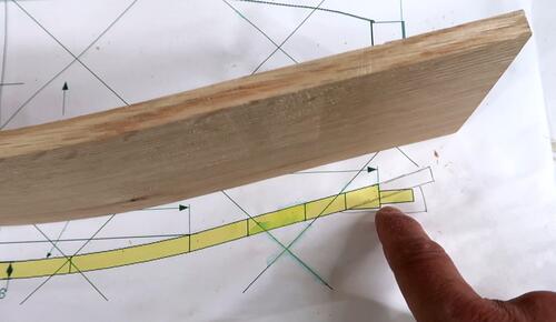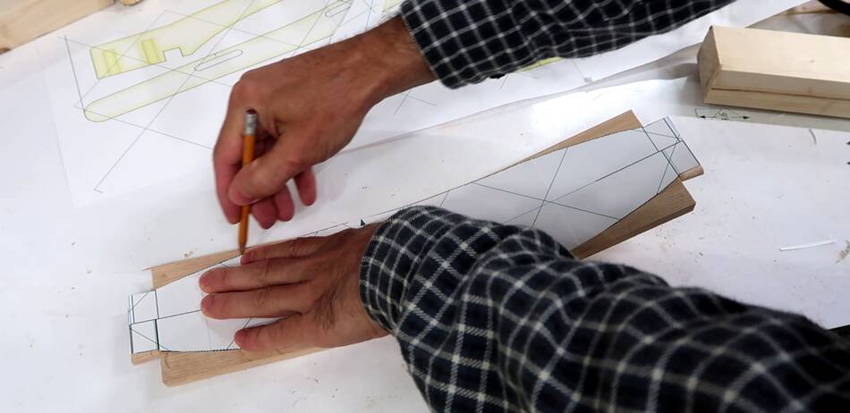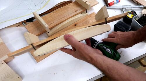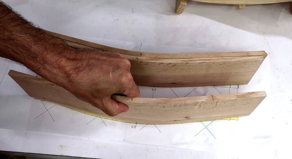 I cut out some bending forms out of 2x6 material, here marking a 48 cm radius of it