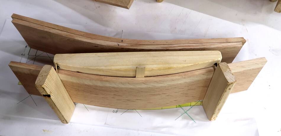 Initial clamping in the jigs. I'm only bending the pieces a little before