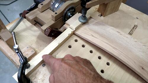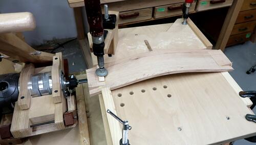 to support the middle of the workpiece's curvature. This allowed me to clamp it